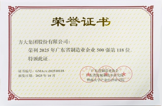 連續5年蟬聯!方大斬獲“廣東企業500強”等兩項榮譽